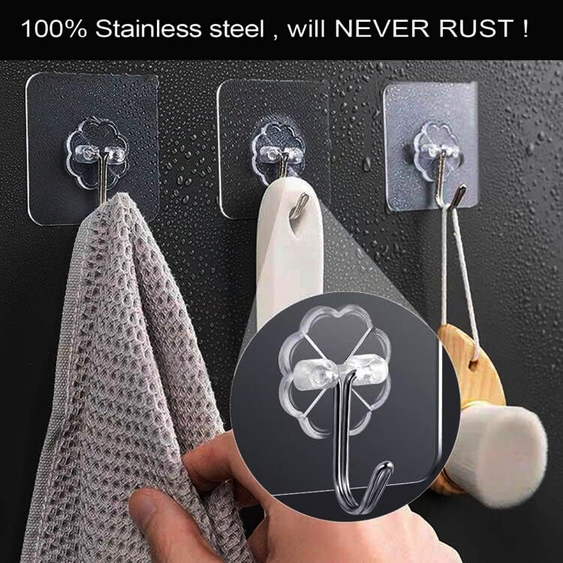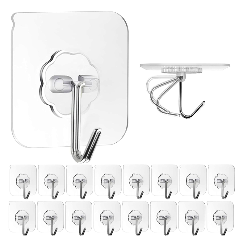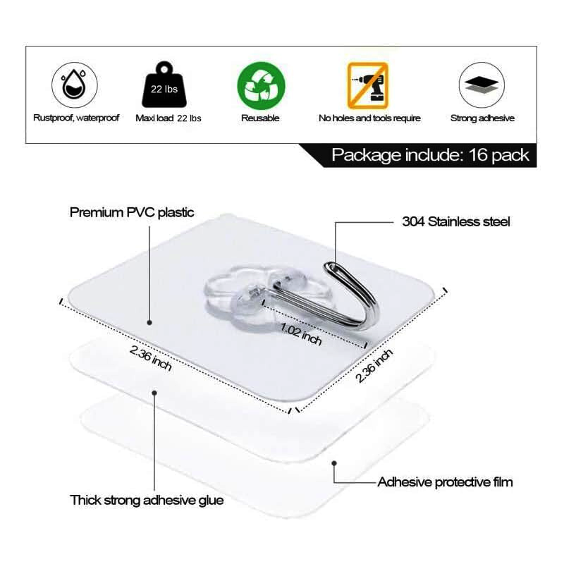 Adhesive Wall Hooks 16 Pack Clear Heavy Duty
